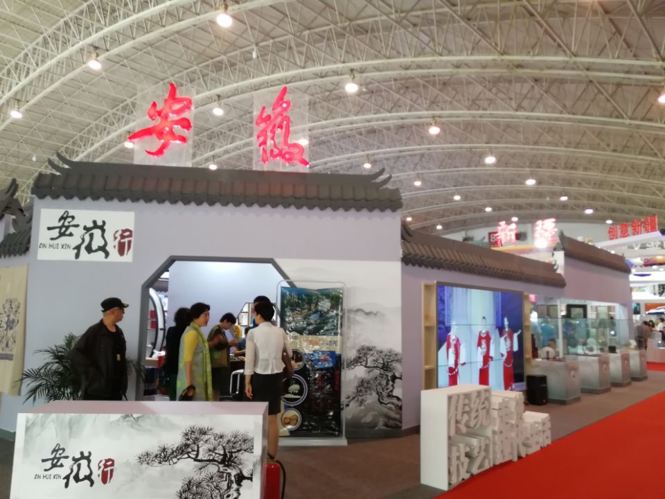 此次博覽會,15家文化企業(yè)代表我省參展,安徽展館以“讓傳統(tǒng)技藝走向現(xiàn)代生活”為主題,集中展示了我省特色刻花彩陶、刻銅藝術(shù)、文房四寶等具有安徽特色的手工藝、旅游紀念品及文化用品。安徽省文化廳周明潔副廳長、省文化廳產(chǎn)業(yè)處蔡小莉處長對展館設(shè)計及前期的籌備工作給予肯定,這也是我公司連續(xù)兩屆為“中國北京國際文化創(chuàng)意產(chǎn)業(yè)博覽會”提供技術(shù)支持和服務(wù)。