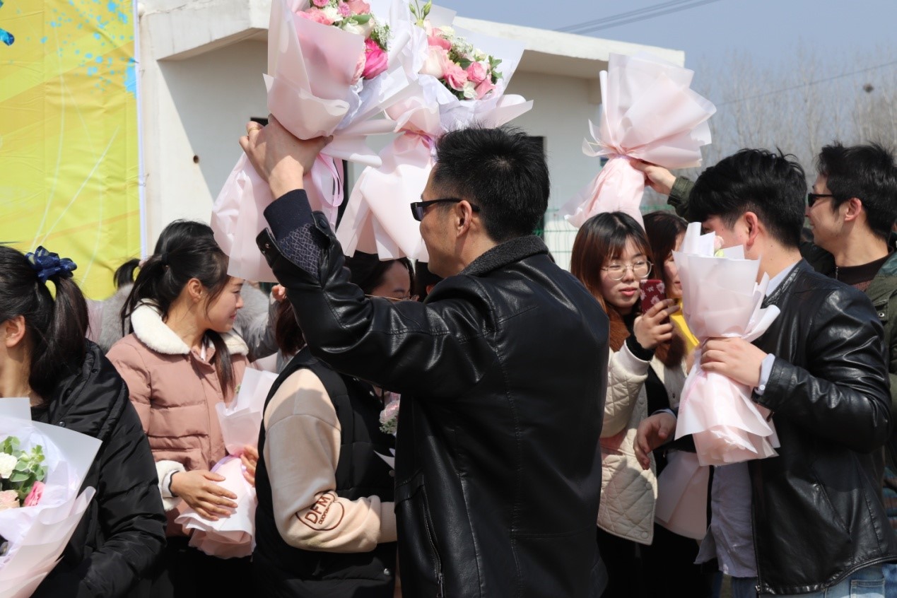 午餐之前,由公司精心策劃的“三八婦女節(jié)”活動也是帶來了不小的驚喜,公司副總經(jīng)理戴總代表公司向一直堅守工作崗位,認真負責的公司女神們送上祝福和問候,其后由公司眾多男同胞們分別為各位女生獻上的一束飽含心意的鮮花。