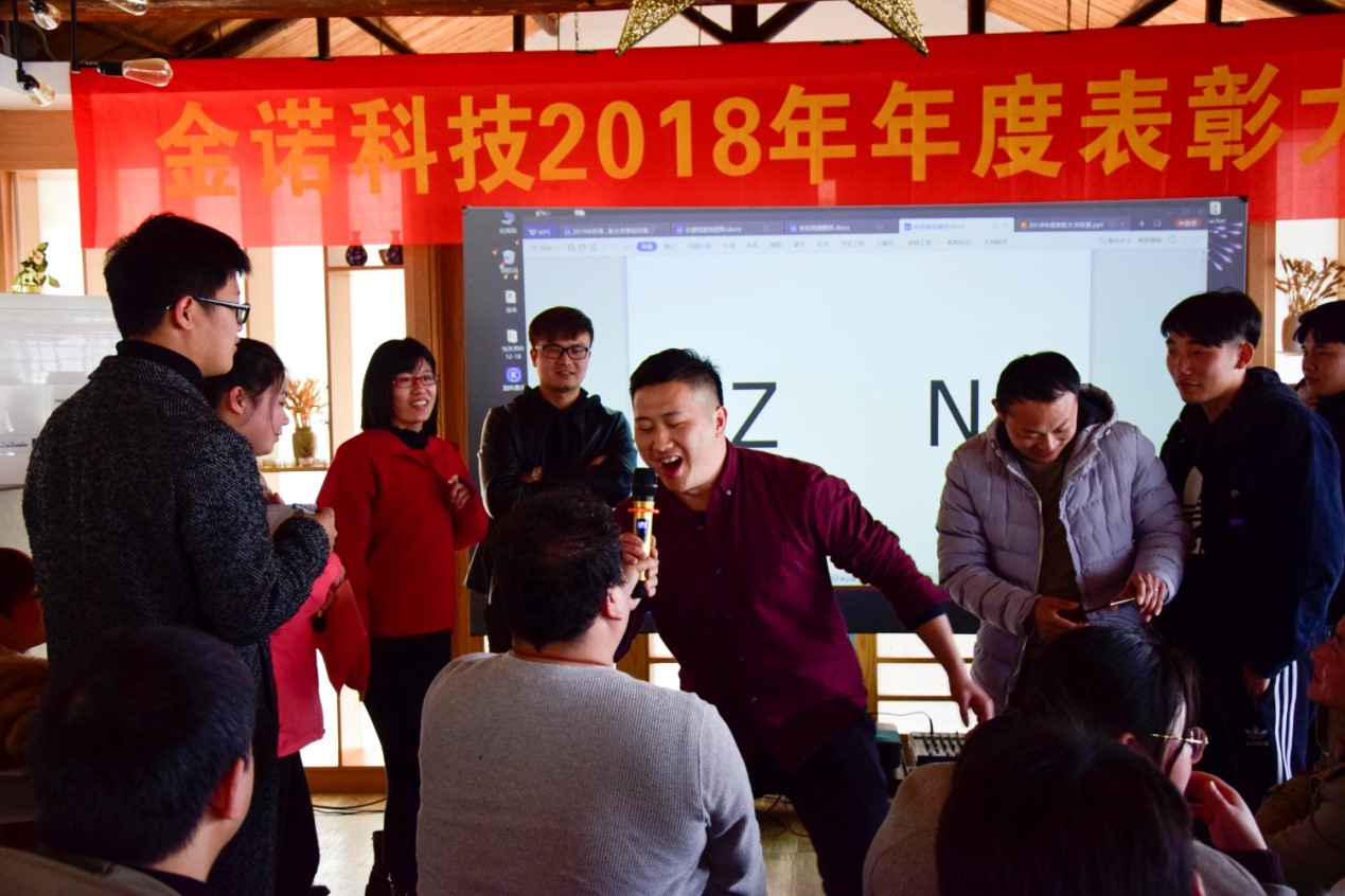 下午2點30分,2018年年度表彰大會在青龍甸生態(tài)園會議室召開,本次大會旨在表彰先進、樹立典型,堅定方向、邁向未來。經(jīng)過各部門推薦并通過公平、透明、嚴謹?shù)脑u審,表彰大會共表彰先進個人21人,優(yōu)秀影視作品3件,最佳設(shè)計作品2件,阿米巴經(jīng)營優(yōu)秀團隊獎一個,并在現(xiàn)場為獲獎個人及團隊頒發(fā)榮譽證書。表彰大會中間,動聽的歌曲和互動小游戲穿插其中,一首滿腔故事的《像我這樣的人》,一首委婉悅耳的《花橋流水》賺得滿堂喝彩,《你劃我猜》夸張的表演加上清奇的腦洞大開,更是讓人大笑不止,隨后的小游戲《拼音接龍》簡單的規(guī)則下暗藏著諸多玄機,參賽選手竭力動用所有的知識儲備,你追我趕,酣戰(zhàn)良久。
