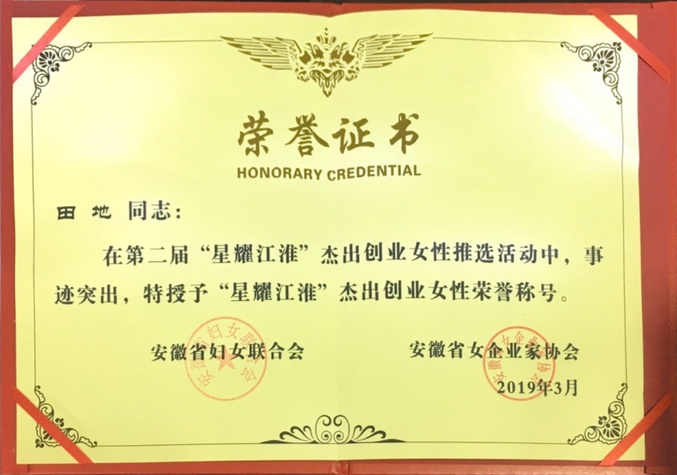 熱烈祝賀田地女士獲得“星耀江淮”杰出創(chuàng)業(yè)女性榮譽稱號