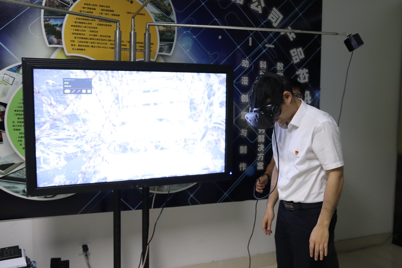 隨后,李副書記一行在副總經(jīng)理戴平和總經(jīng)理助理丁辰的陪同下參觀了公司產(chǎn)品展示廳,觀看了即將制作完成的31集原創(chuàng)動畫片《有巢氏傳奇》,親身體驗了高空VR吊橋、諾諾魔法動物園等娛樂項目,充滿創(chuàng)意的產(chǎn)品項目、領(lǐng)先的VR技術(shù)應(yīng)用、寓教于樂的展現(xiàn)形式,一系列的產(chǎn)品展示受到了李副書記一行的充分肯定。