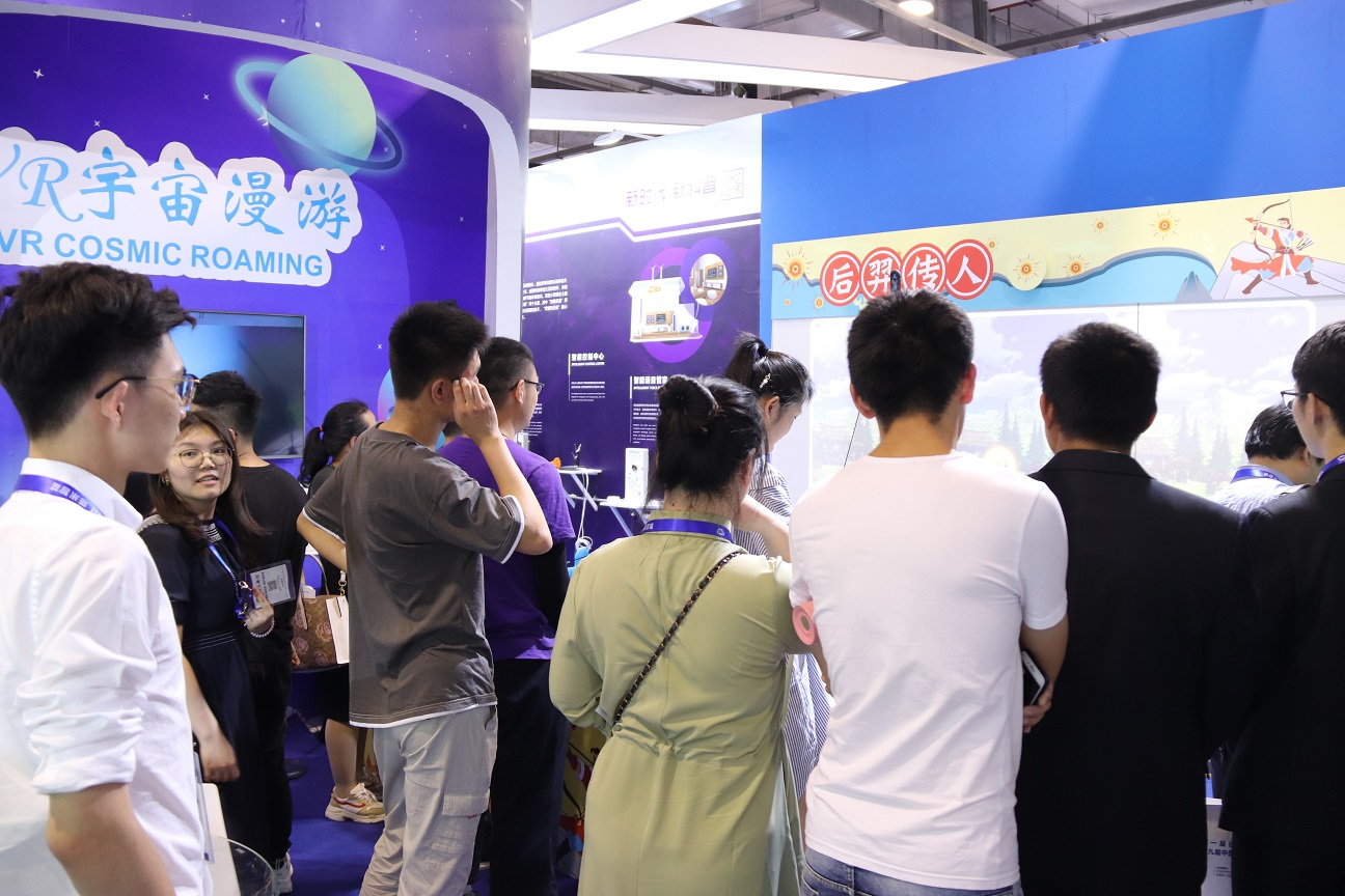 此次參展,金諾科技共展出化蝶漫游、后羿傳人、VR宇宙漫游、神殿保衛(wèi)戰(zhàn)以及伏羲仙林共五件展品。 在此次金諾科技的參展現(xiàn)場,你既可以選擇拿起弓箭保衛(wèi)家園,也可以乘坐宇宙飛船進入太空看看浩瀚的宇宙景象,可以發(fā)揮想象力創(chuàng)造出你喜歡的動物顏色,讓他們出現(xiàn)在伏羲仙林中,同時你也可以化身蝴蝶翩翩起舞在仙林秘境之中。展品一經展出,就吸引了眾多參觀者前來體驗,體驗者絡繹不絕,展位現(xiàn)場也一度成為科博會上人流最聚集的展位之一。